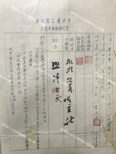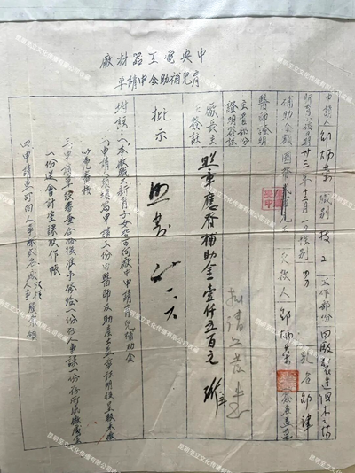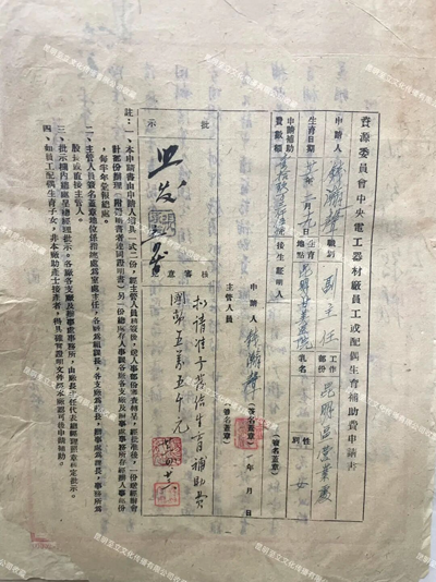 ▲1943年10月中央電工器材廠(昆明電纜集團前身)發(fā)放職工育兒補助國幣300元。