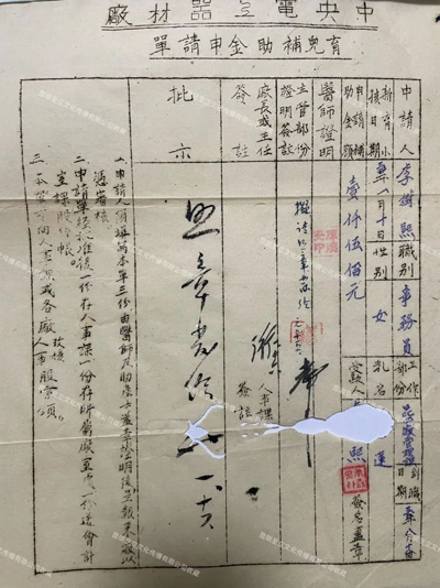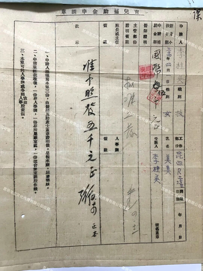 ▲1943年2月中央電工器材廠(昆明電纜集團前身)發(fā)放職工育兒補助國幣200元。