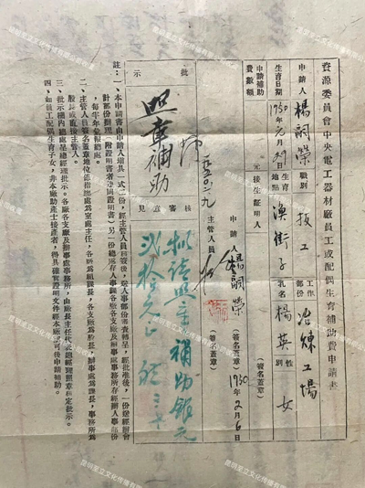 ▲1947年2月中央電工器材廠(昆明電纜集團前身)發(fā)放職工育兒補助國幣55000元。